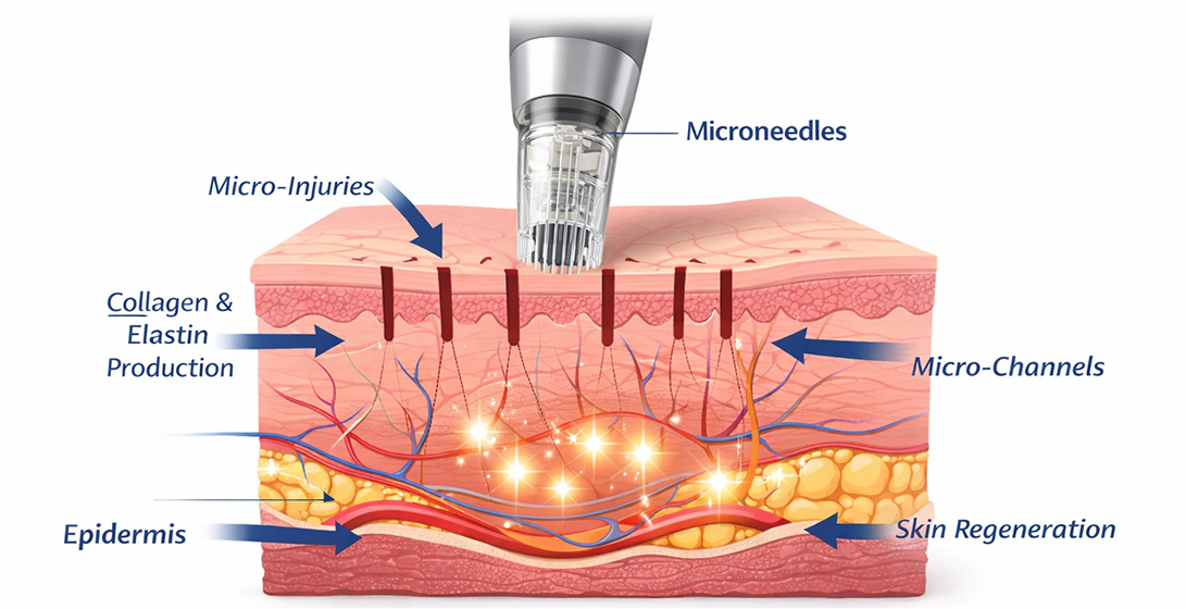 A minimally invasive skin treatment using a precision-controlled microneedling device to stimulate the skin’s natural healing process, supporting skin regeneration and enhancing overall skin quality.